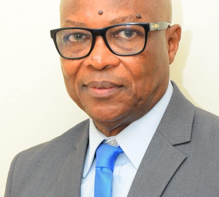 A man with a bald head and wearing glasses is dressed in a gray suit, light blue shirt, and blue tie. He is looking at the camera with a neutral expression. The background is plain and light-colored.