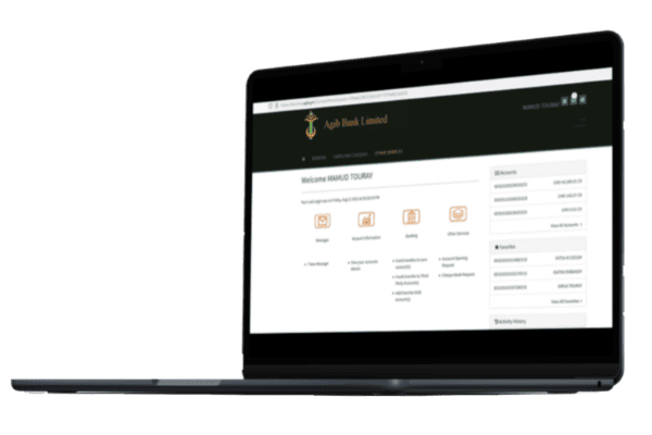 Agib Bank online banking service provides you with efficient, convenient, and safe banking renowned for its convenient features like e-statements, funds Transfer within your account and to other accounts, balance inquiries, open sub-accounts, requests for cheque books and ATM cards, view daily foreign currency rates and more.
