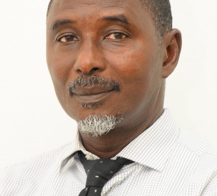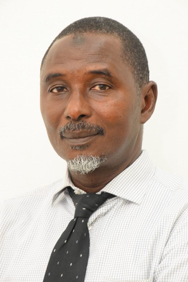 A man with short hair and a salt-and-pepper goatee, wearing a light-colored striped shirt and a dark polka-dotted tie, looks directly at the camera against a plain white background.