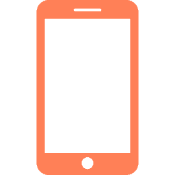 A simple, orange silhouette of a smartphone with a rectangular screen and a small circular button at the bottom. The screen is dark, indicating it is turned off, and the design is minimalistic.